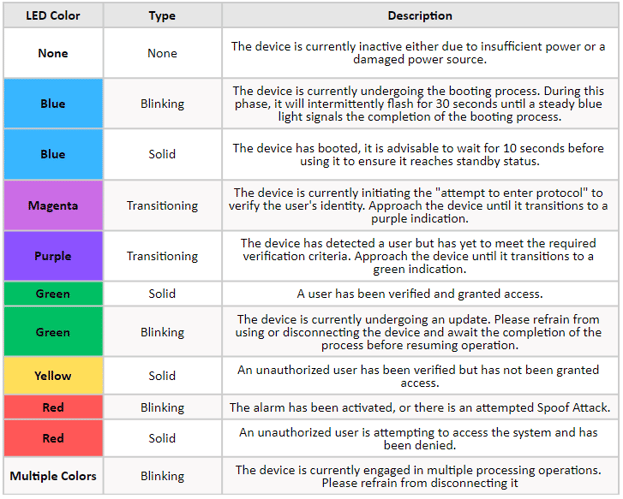 *If the device is not operating as described in the table, please promptly seek support from our team